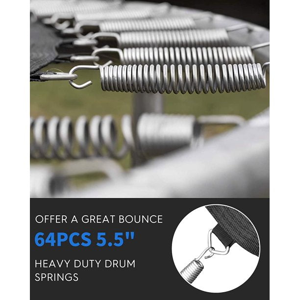 - 【Outstanding Quality】 The large trampoline has 80 galvanized springs to provide strong rebound, remaining great bounce quality even in extreme weather. The jumping mat of the recreational trampoline is made of high-quality polypropylene that offers good support, high grip, and long-lasting durability. The cushion is made of thick cotton and waterproof ensuring you a cozy and peaceful rest after jumping and placing it outside without worries.