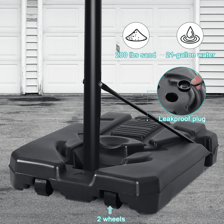 To further enhance stability and durability, we've designed a robust base for Gasky basketball goal. The base can hold up to 176.37 pounds of water or 220.46 pounds of sand, ensuring that the hoop remains steadfast during use. Whether you're engaging in intense competition or using it for extended periods, this basketball goal maintains consistent performance, giving you peace of mind. -