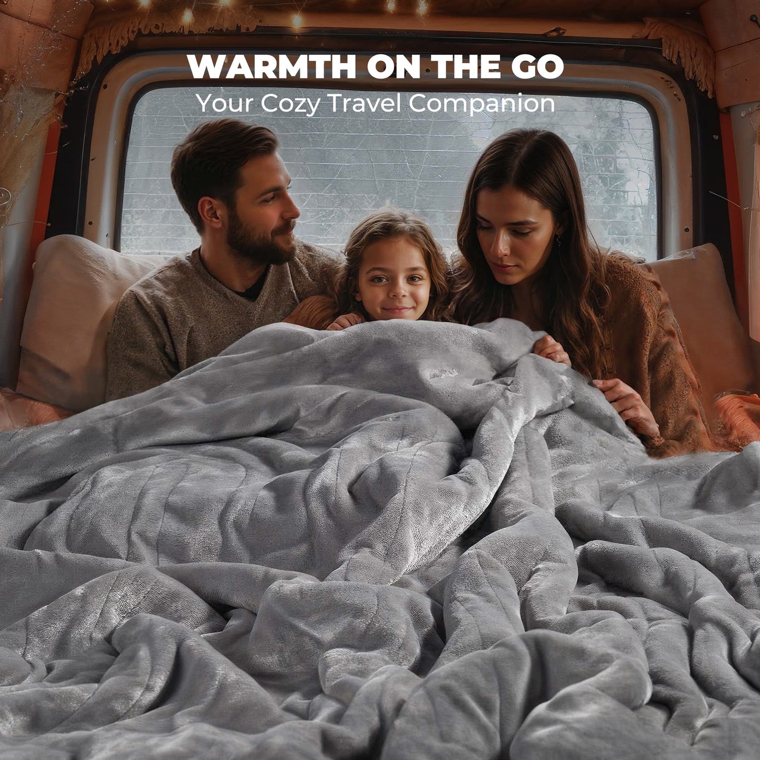 - 【Oversized 50x60 Inches】The 50x60 inches large size of the heated throw blanket allows it to be used as a shawl to wrap around the shoulders or as a heated blanket to cover the entire body. Enjoy comfort and freedom on the sofa, in bed or at the desk with the electric blanket.